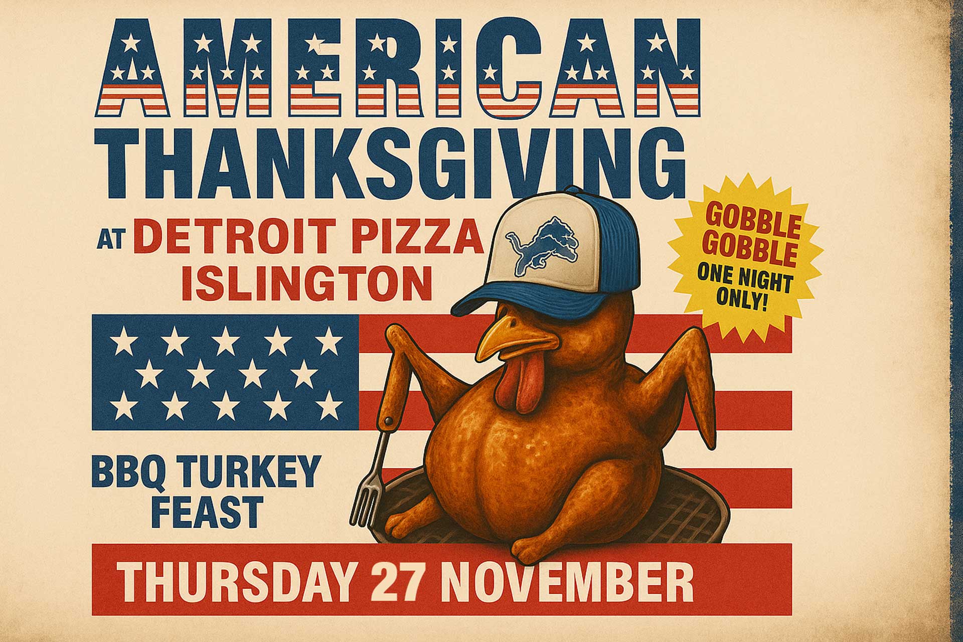 Last year’s Thanksgiving at Detroit Pizza Islington was huge. Packed house, turkey off the smoker, drinks flowing, NFL on the screens, a real good time. So HELL YEAH, we’re doing it again. More smoke. More sauce. More of everything you love.